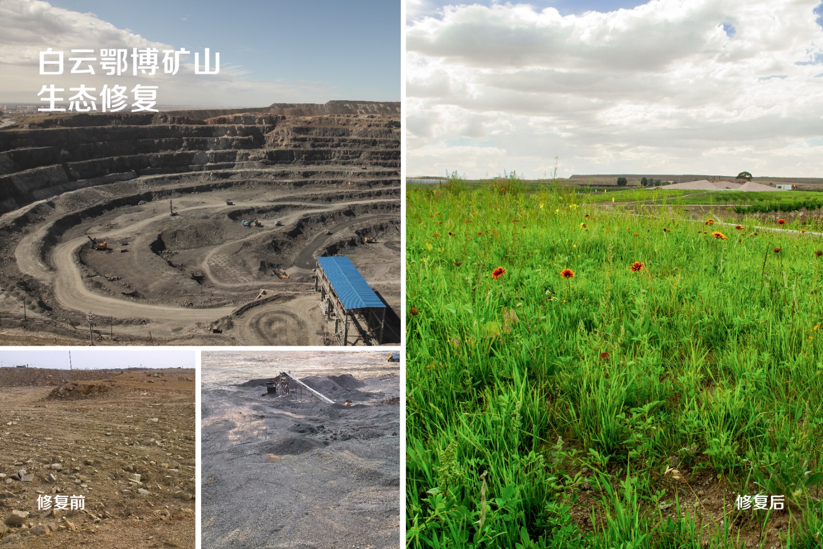 蒙草團(tuán)隊(duì)秉持“打造循環(huán)生態(tài)”的原則,治理白云鄂博礦區(qū)環(huán)境,將現(xiàn)代工業(yè)文化與原始游牧草原環(huán)境相結(jié)合,打造可觀可賞,具有工業(yè)精神與民族特色的公共綠地。